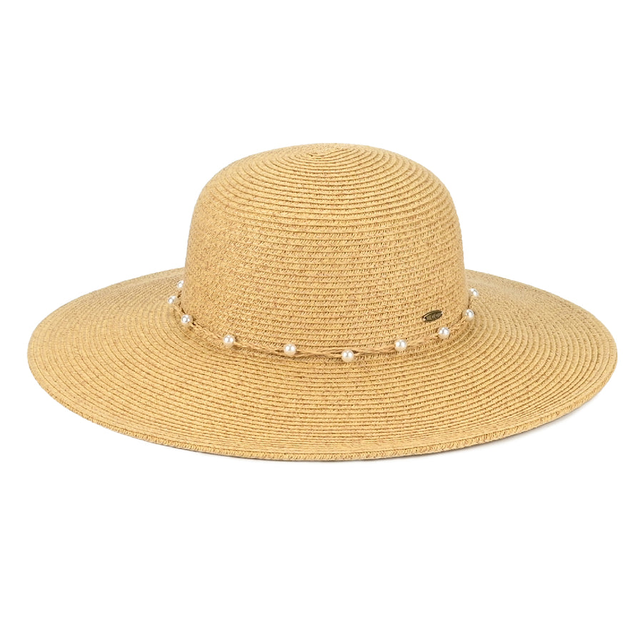 Shield yourself from the sun in style with our CC Wide Brim Sun Hat with Pearl Trim Band. The wide brim offers ample protection from harmful UV rays while the pearl trim band adds a touch of elegance. Perfect for any outdoor occasion, keep cool and chic with our sun hat.