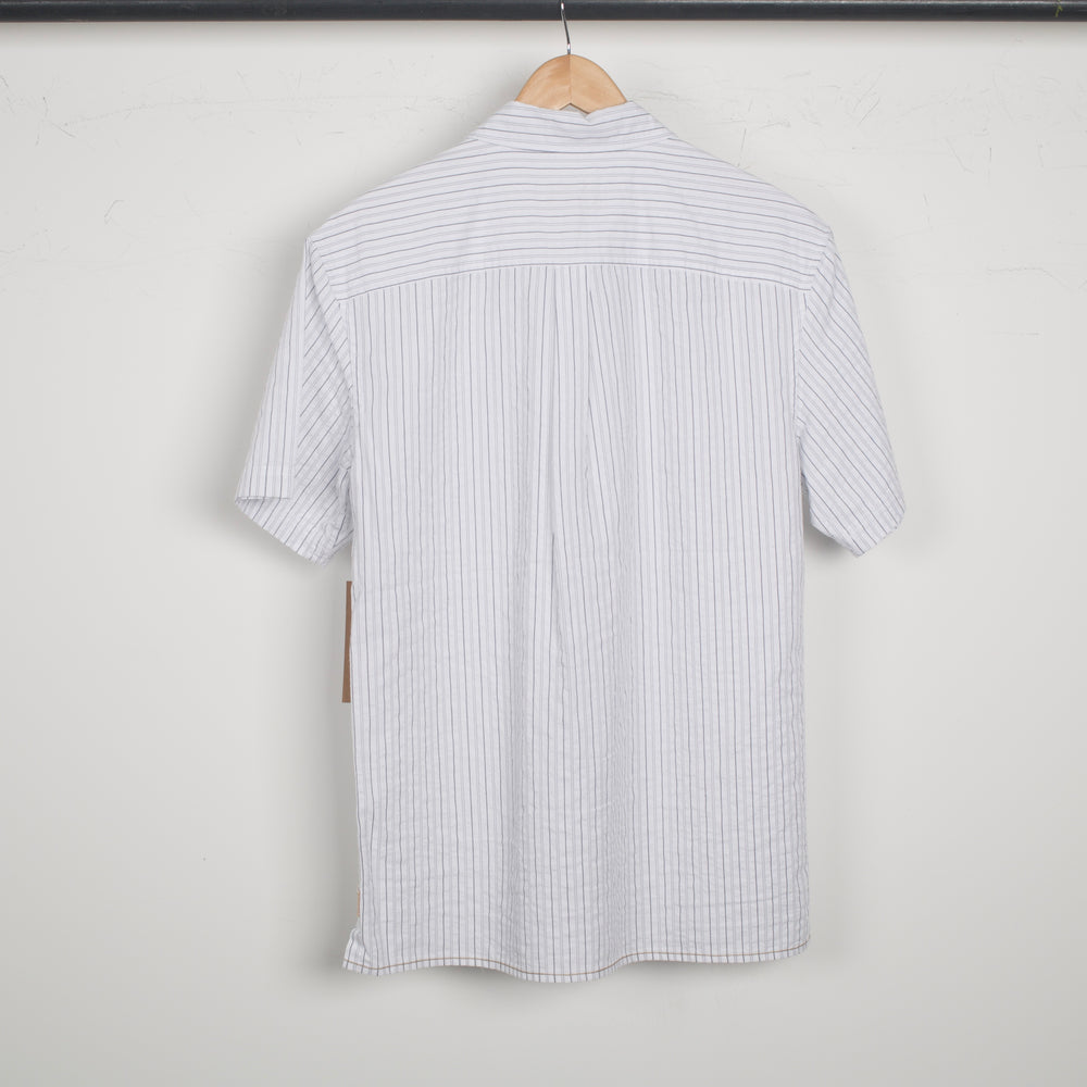 Ride the waves of style with the Surfside Joseph Crinkle Stripe Shirt. This fun and playful button down features a crisp white background with bold navy blue stripes, perfect for making a statement. Whether you're at the beach or in the city, this woven shirt will have you looking effortlessly cool and stylish.