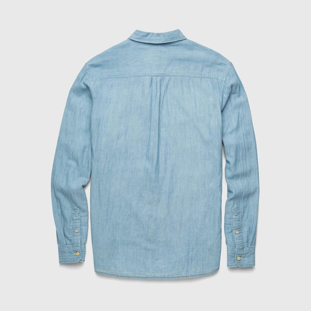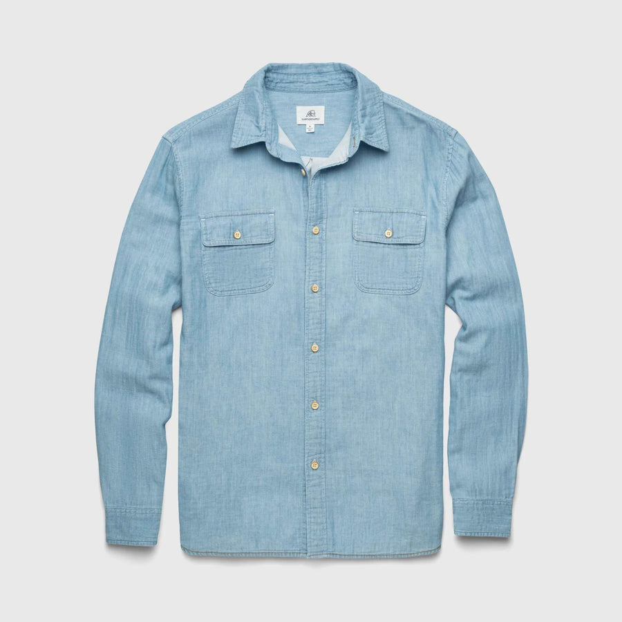 Introducing our Surfside Zhu Chambray Double Gauze 2-Pocket Shirt! Made from 100% cotton chambray gauze, it's the perfect lightweight and breathable option for warmer days. With two front button flap pockets, a buttoned placket, and classic collar, this slightly broken-in shirt will become your new forever favorite.