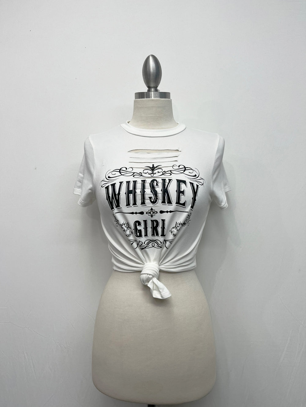 The G Mini Whiskey Girl Knot Tank is a stylish and unique top that is perfect for any occasion. Made with a comfortable and breathable fabric, it features a fun knot design and a bold graphic print of a whiskey bottle. This tank will add a touch of personality to your wardrobe while keeping you cool and comfortable.