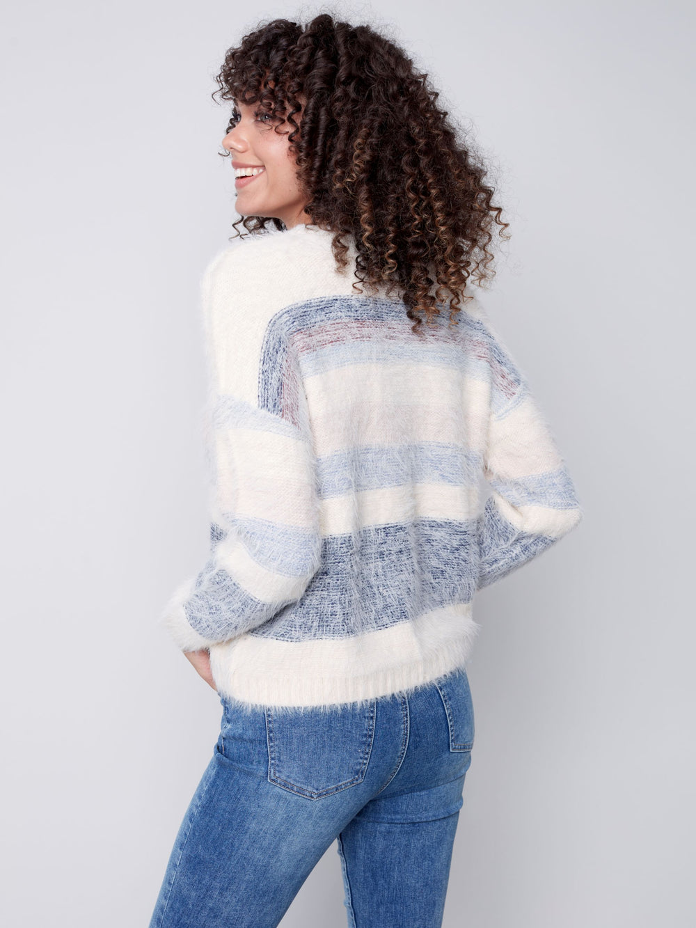 Wir stellen vor: den Charlie B Rundhalspullover mit tief angesetzter Schulterpartie und flauschigen Streifen! Dieser einzigartige Pullover zeichnet sich durch ein flauschiges Garnstreifendesign und eine überschnittene Schultersilhouette aus, die für einen gemütlichen und modernen Look sorgt. Mit seinem langlebigen Design sorgt dieser Pullover dafür, dass Sie sich über Jahre hinweg wohl fühlen.