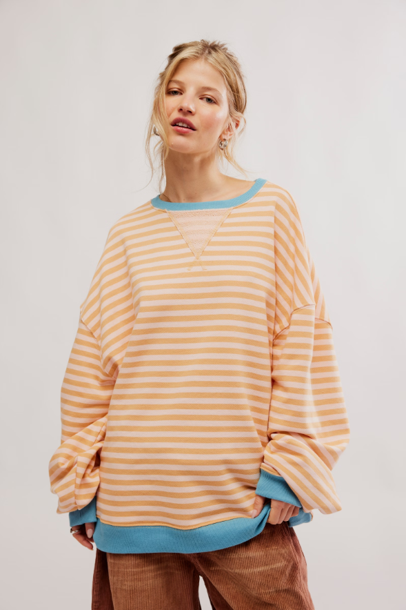 The Free People Classic Striped Crew is a timeless wardrobe staple. Made with high-quality materials, this crewneck sweater showcases classic stripes that never go out of style. Perfect for any occasion, it offers style and comfort with a sleek and sophisticated design.