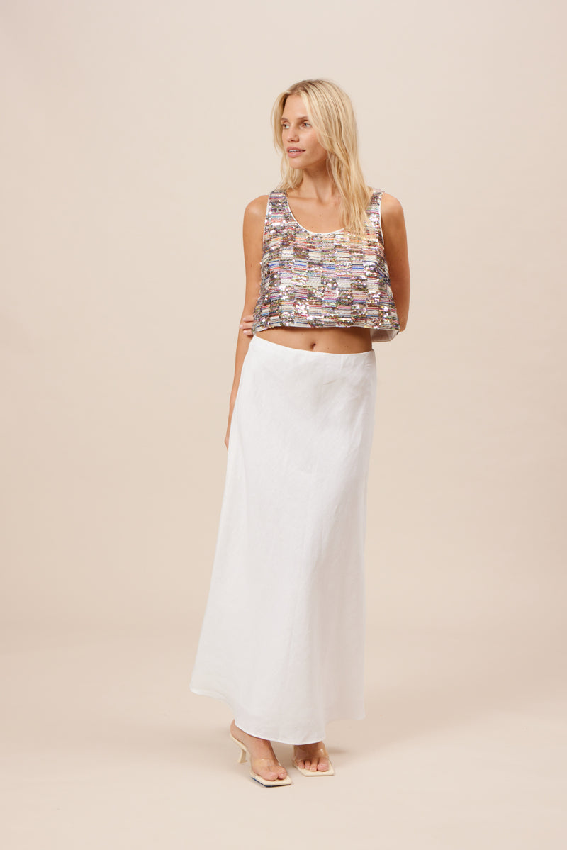 Sparkle and shine in the Lucy Paris Lira Sequin Top. With its stunning sequin detailing, this top will catch the eye of everyone around you. Perfect for a night out or special occasion, it's the ultimate statement piece for any fashion-forward individual.