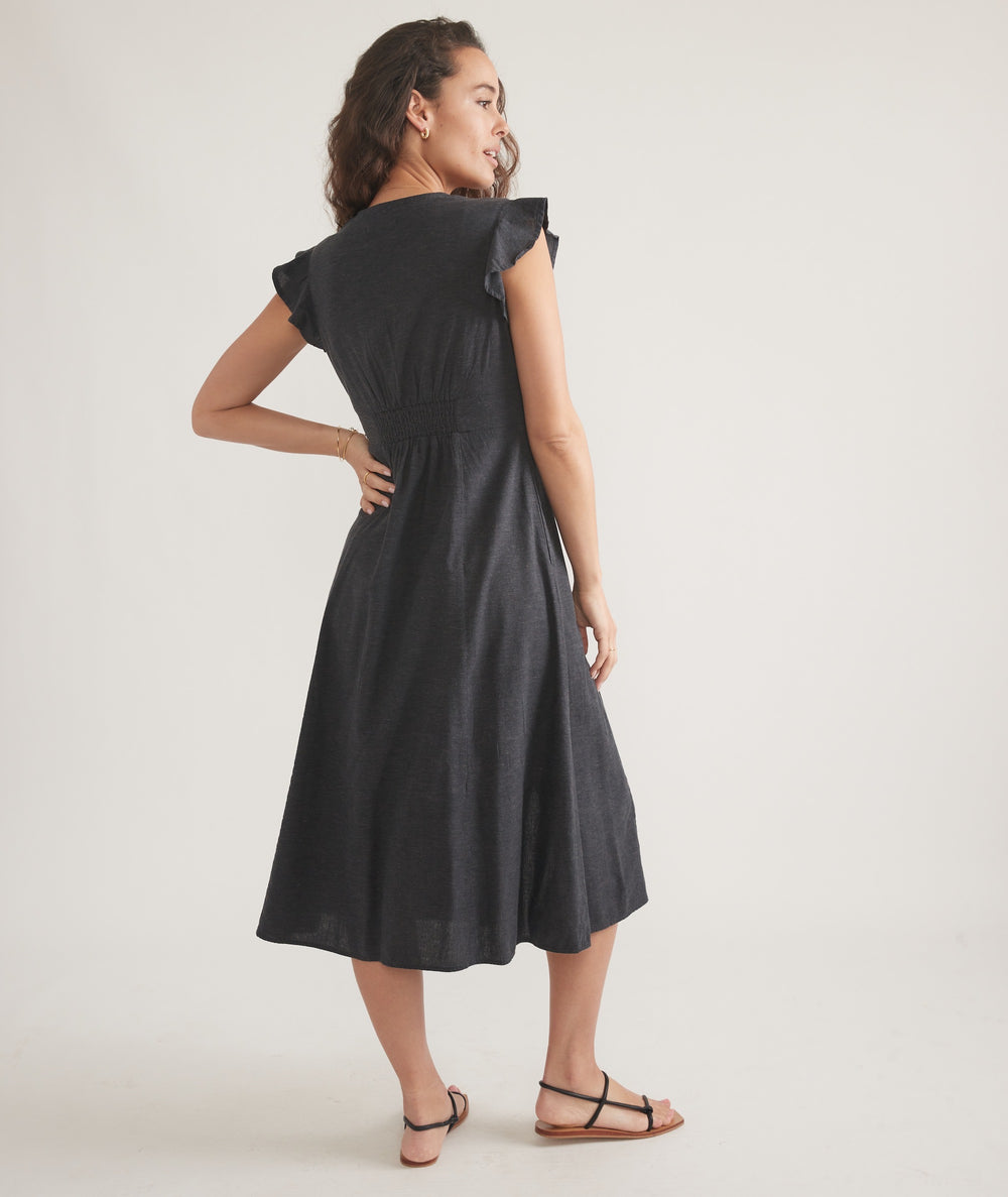 Be the epitome of effortless style in the Marine Layer Camila Midi Dress. Made with the softest fabric, this dress is perfect for any occasion. With its versatile midi length, it can be dressed up or down, making it a must-have in your wardrobe. Get ready to turn heads and feel comfortable doing it!