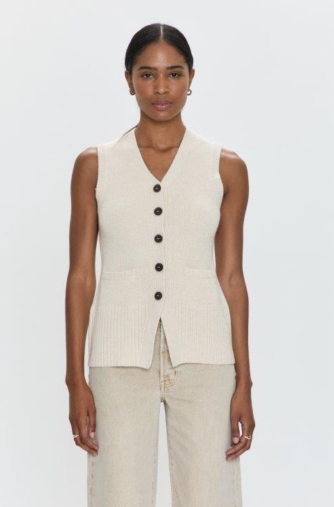 Be bold and stylish with the Pistola Audra Vest! This button up sleeveless sweater not only adds a trendy touch to any outfit, but also keeps you comfortable and versatile for any occasion. Don't miss out on this must-have piece!