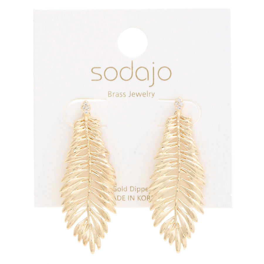 Add some nature-inspired style with our Sodajo Leaf Metal Gold Dipped Earrings! These unique earrings feature delicate gold-dipped leaves, adding a touch of whimsy to any outfit. Perfect for those who want to stand out and embrace their inner free spirit. (Warning: May result in excessive compliments.)