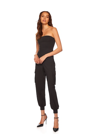 Der Susana Monaco Tube Cargo Jumpsuit ist die perfekte Kombination aus modernem Stil und Komfort. Seine dehnbare Baumwoll-Spandex-Mischung sorgt für eine bequeme, aber atmungsaktive Passform, während maßgeschneiderte Details für einen kantigen, urbanen Look sorgen. Die beiden Cargotaschen bieten sicheren Komfort und sind ideal für einen aktiven Lebensstil.