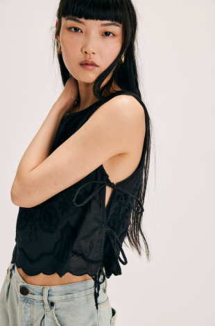 The Free People Faded Gardens Tank is made with soft and breathable 100% cotton fabric, with a delicate floral design accented by thick embroidery. The tied closure on the sides and scalloped hem add a touch of charm to this versatile tank. Perfect for a casual day out or a summer festival.