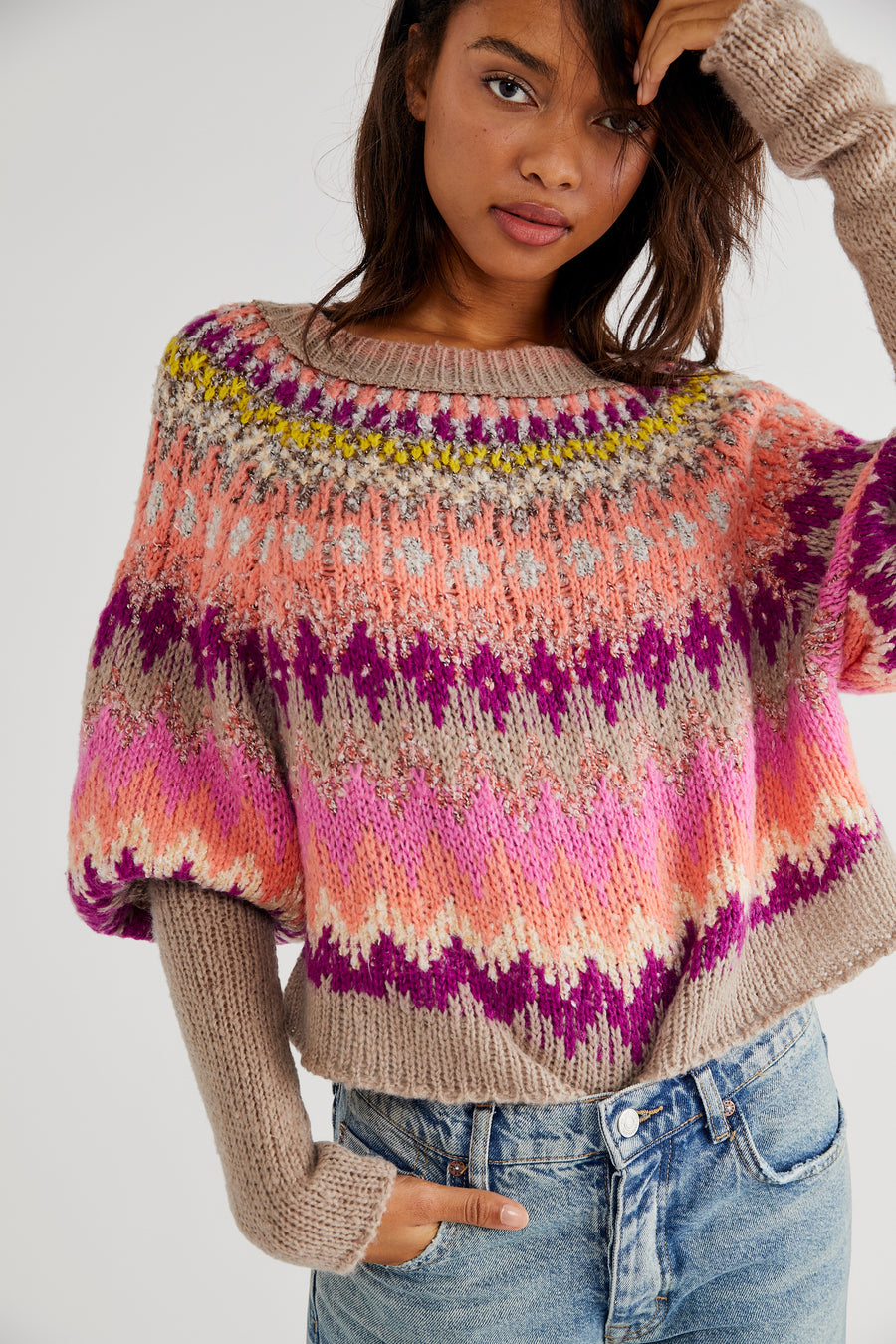 This festive Free People Home For The Holidays sweater will keep you warm and cozy in style. Crafted from a cozy blend of lambswool and polyamide, this sweater features a stylish jacquard pattern for a cheerful holiday look.