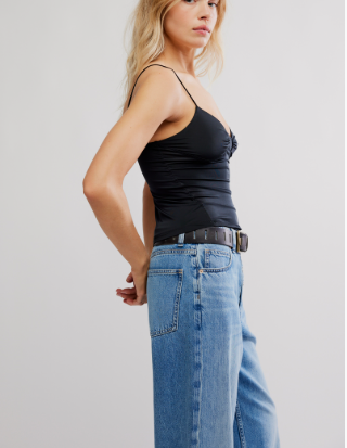 This Free People My Way Triangle Cami is your new go-to for effortless style and comfort. Crafted from ultra-soft jersey, it features defined triangle cups with playful ruching that flatters every curve. The V-neckline and fixed spaghetti straps add a flirty touch, while the hip-length cut makes it perfect for layering or wearing solo. Soft, stylish, and oh-so-easy to wear!