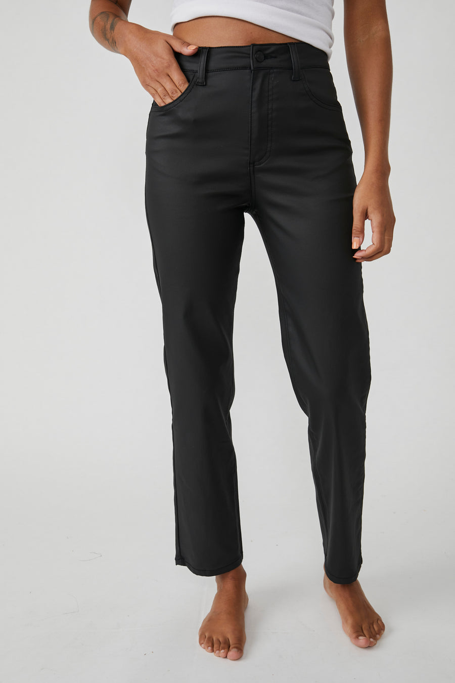 Introducing the Free People Pacifica Coated Straight jeans. Made with high-quality materials, these jeans provide maximum comfort and style. The coated finish adds a touch of edginess, while the straight cut flatters your figure. Perfect for any occasion, these jeans are a must-have addition to your wardrobe.