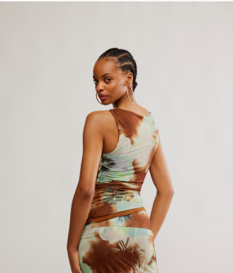 Elevate your wardrobe with the Free People Printed Ash Knit Top. Crafted in a striking abstract pattern, this knit tank top features a drap-neck and high neckline for a sophisticated touch. Perfect for a day out or a night on the town.