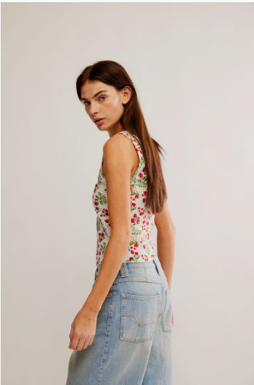 Add a touch of unique style to your wardrobe with the Free People Printed Tilly Vest. This sleeveless ribbed knit top features a loop button closure down the front and a fun printed pattern. Made with 98% cotton and a slight stretch for comfort, it's perfect for any casual outing.