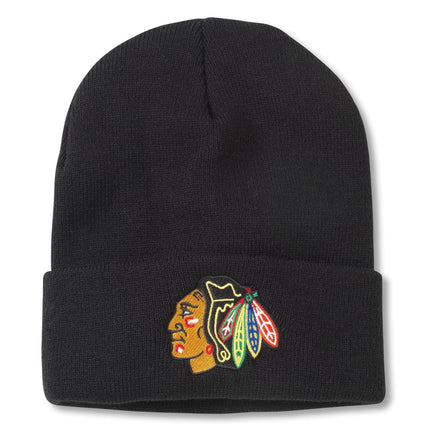 Conquer chilly days with the American Needle Chicago Blackhawks Terrain Knit Hat. The fine gauge stretch heather knit ensures a snug fit, while the matte print ivory canvas applique adds a touch of style. Held down with a zig-zag stitch, this quirky hat is sure to turn heads. Go Blackhawks!