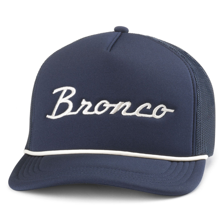 Saddle up with the American Needle Foamy Roscoe Bronco Hat! This 5 panel soft foamy hat features breathable mesh sides and back paneling, a stylish curved brim, and a braided nylon rope across the visor. Show off your bronco pride with the raised matte high density logo. Yeehaw!