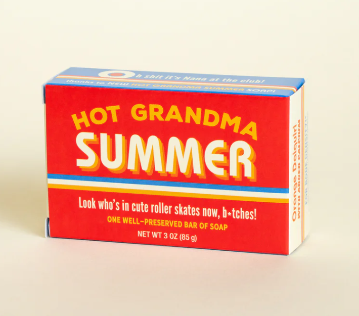 Indulge in the nostalgia of summers gone by with Whiskey River Soap Hot Summer Grandma! This triple-milled bar soap is boxed in retro-inspired packaging, adding a touch of whimsy to your daily routine. At 3 oz, this 100% vegan soap is the perfect size for a refreshing cleanse. Made in the USA with high-quality ingredients, treat yourself to a little piece of summertime all year round.