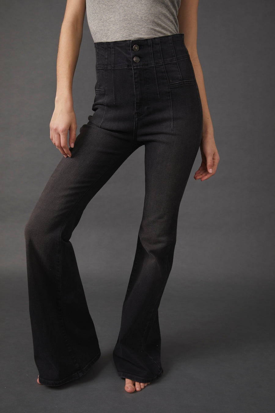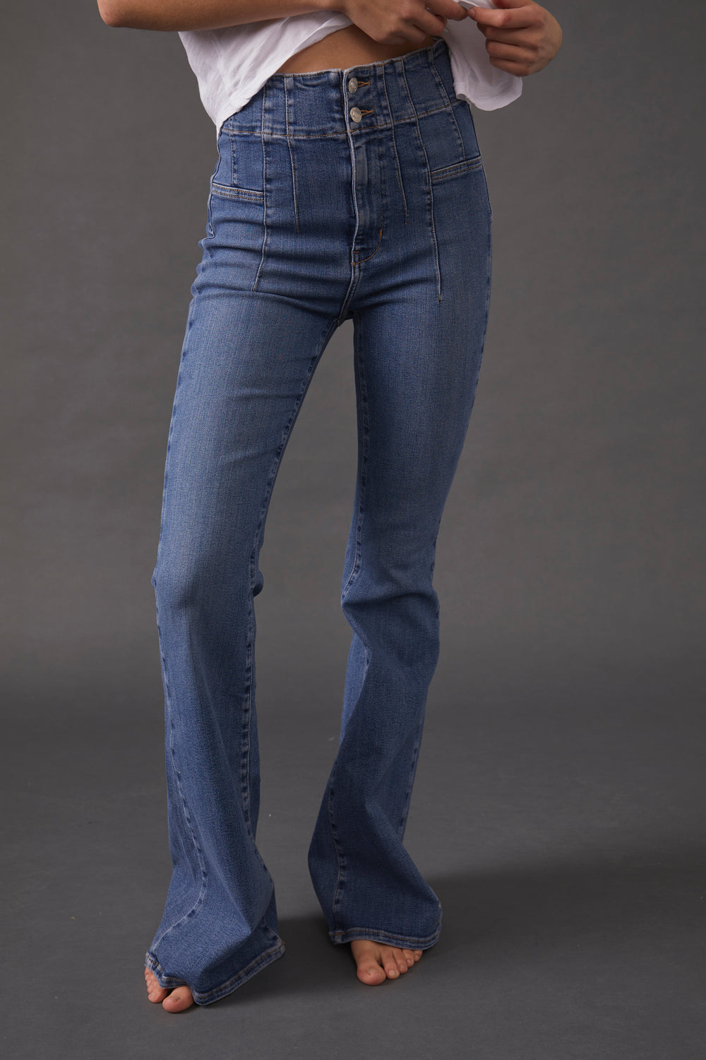 The perfect way to add a fresh twist to your wardrobe, the Jayde Flare Jean by Free People features a classic high-rise fit that flares out at the knee for a modern take on a '70s-inspired look. Made with stretchy cotton denim for comfort and flexibility, it's a timeless piece for any season.