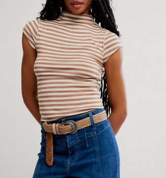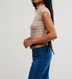 Elevate your casual look with the Free People Lola Stripe Tee, featuring a chic mock neck and playful cap sleeves. Its soft fabric and flattering fit make it perfect for sunny days or layering under your favorite jacket. Add a dash of fun and effortless style to your wardrobe with this striped essential!