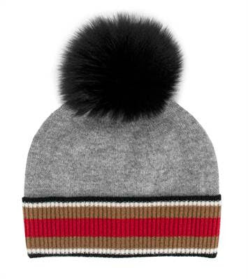 Stand out with Mitchie's Matchings Contrast Cuff Hat featuring a luxurious fox pom. The bold contrast cuff adds a trendy flair to this warm knit hat, making it a stylish choice for any winter outing. Enjoy both comfort and style in one chic accessory.