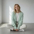 Offener Strickpullover mit schwarzem Band