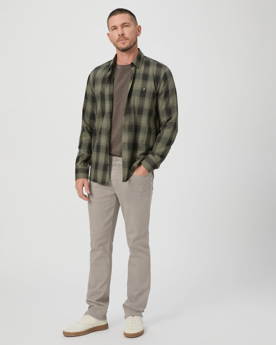 Slip into sleek style with the Paige Denim Federal Silver Pearl jeans. Featuring a slim straight fit in a silvery taupe shade, these jeans are both modern and comfortable thanks to the premium stretch and recovery of the bestselling TRANSCEND denim. The loosely fitted thigh and straight leg provide ease at the hip for everyday wear. Rise: 10 1/4", Inseam: 33 1/2", Leg Opening: 15".