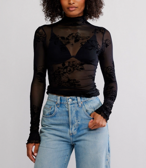Charlie B Long Sleeve Mock Neck Fine Rib Top