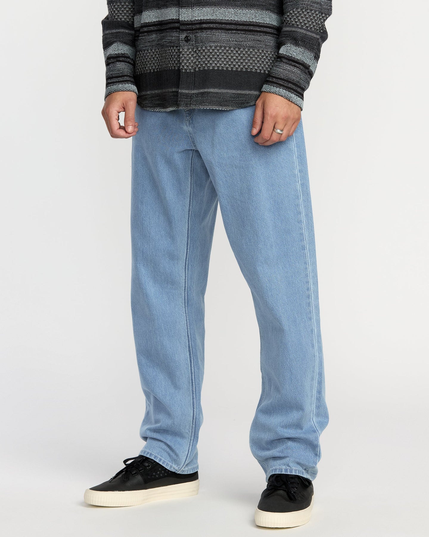 Volcom's Fivedown Denim delivers that perfect sweet spot between comfort and style. Crafted from 100% cotton, these jeans feature a relaxed tapered fit that sits below the waist with a 16" leg opening—ideal for stacking or showing off your kicks. Built with Volcom's signature brand styling and details, they're the go-to pair for everyday wear. Plus, they're made with Water Aware production methods that skip the stone wash and softener, using smart enzyme washes to keep water usage minimal. Sustainable style never looked so good.
