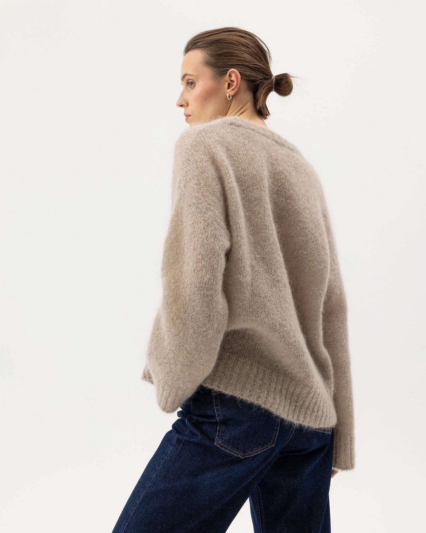Experience the luxurious softness of this knitted sweater crafted from a lightweight, airy mohair blend. Designed with an oversized fit, round neck, and dropped shoulders, it offers effortless style and comfort. Made with RMS-certified mohair, it guarantees animal welfare, sustainable pasture use, and ethical production. Proudly and sustainably produced in Europe, this sweater combines conscious fashion with lasting quality.