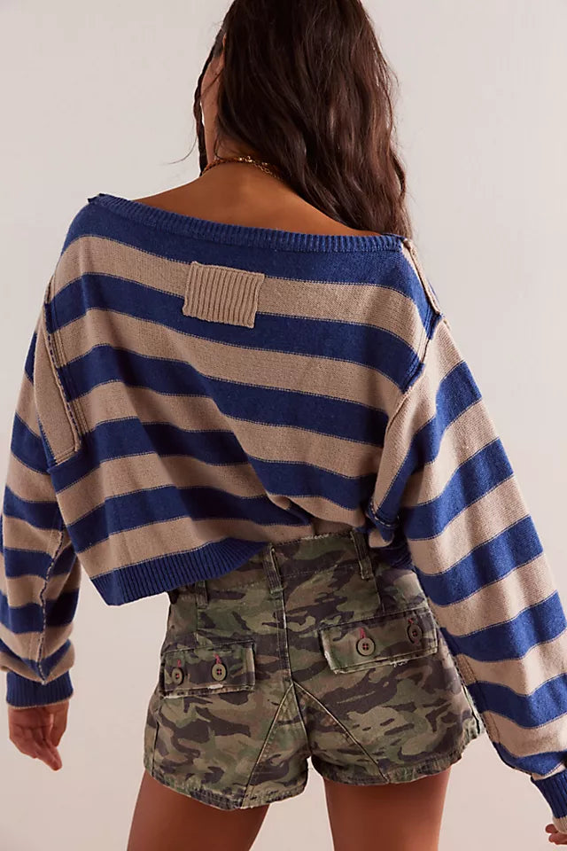 Indulge in casual comfort with this slouchy pullover sweater from Free People. The loose silhouette creates a relaxed fit, while the wide boat neckline and exposed seaming add a touch of flair. Ribbed trimming and raglan sleeves complete the look, making it the perfect addition to your wardrobe.