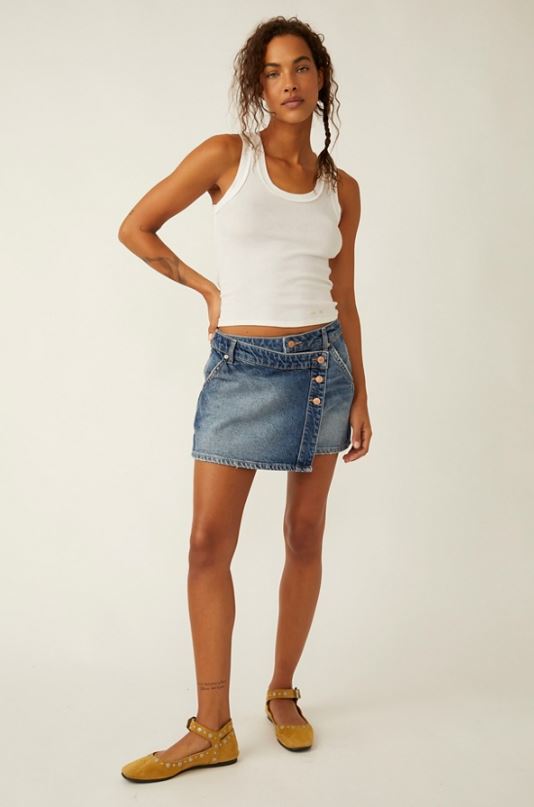 Discover the perfect combination of comfort and style with the Free People Wynne Denim Skirt. Made with high-quality denim, this skirt offers a flattering fit and durable wear. Featuring a classic design, it's versatile for any occasion. Elevate your wardrobe with this must-have piece.