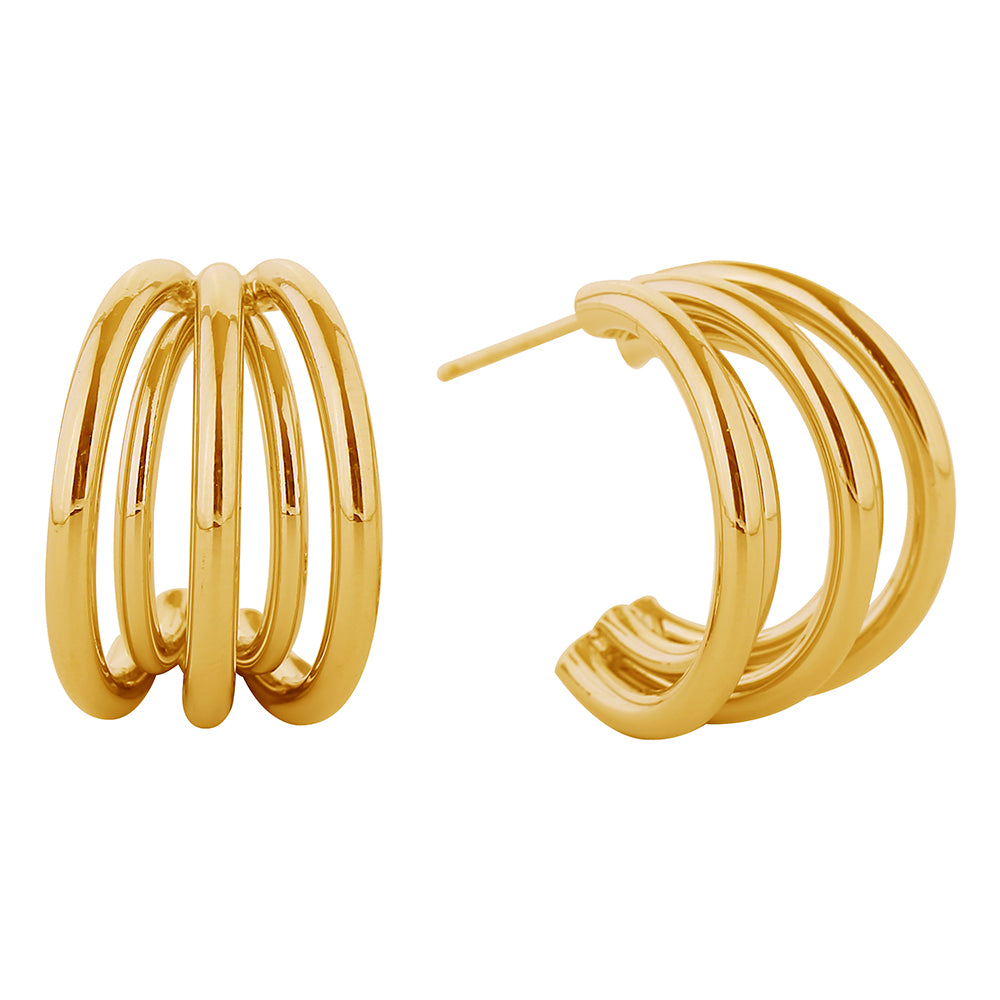 Add a touch of sparkle and fun to your look with the Joia 14K Gold Dipped Quintuple Hoop Earrings. These playful hoops stack five delicate circles in a chic, eye-catching design that dances with every move. Perfect for mixing and matching or wearing solo, they bring a golden glow to any outfit without overwhelming your style. Light, lively, and ready to brighten your day!