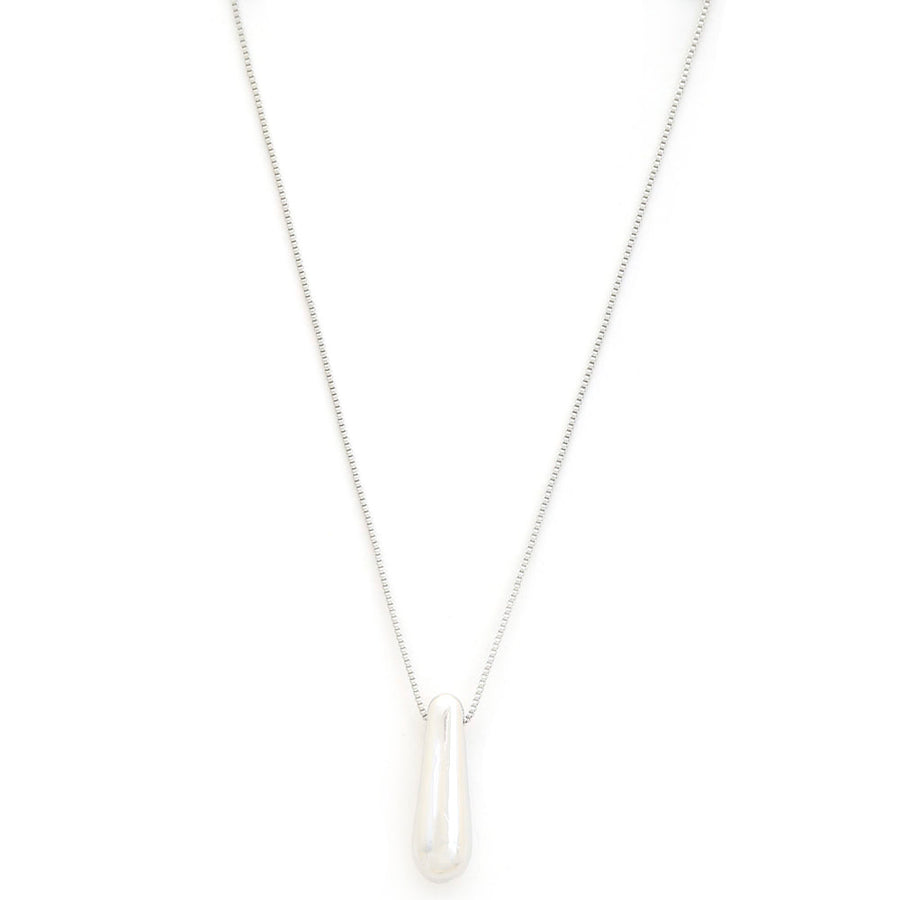 Jazz up your look with this long metal necklace featuring a unique white tear drop pendant. Elevate any outfit with a touch of whimsy and a pop of charm. With its teardrop shape, this necklace will add a playful accent to any ensemble.