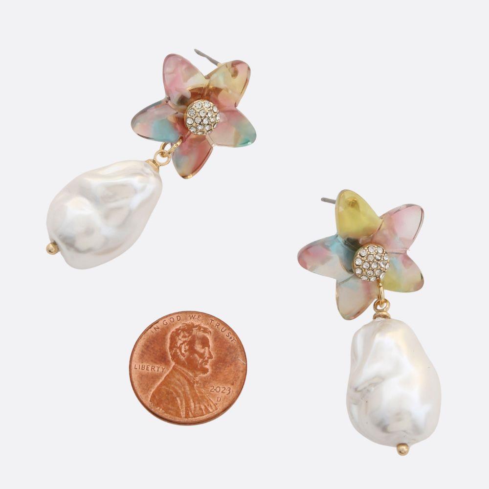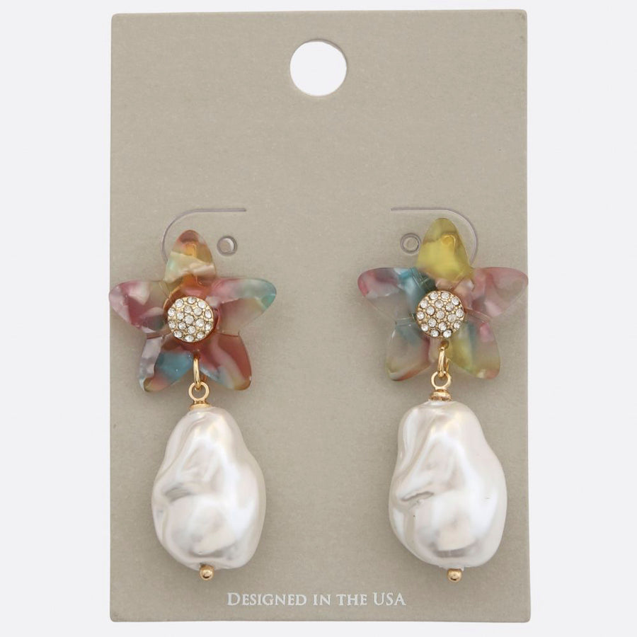 Add a playful and unique touch to any outfit with our Joia Flower Pearl Dangle Earring. The flower post features a vibrant multi-color design, with a pearl dangling for a fun twist. Stand out from the crowd with these one-of-a-kind earrings!