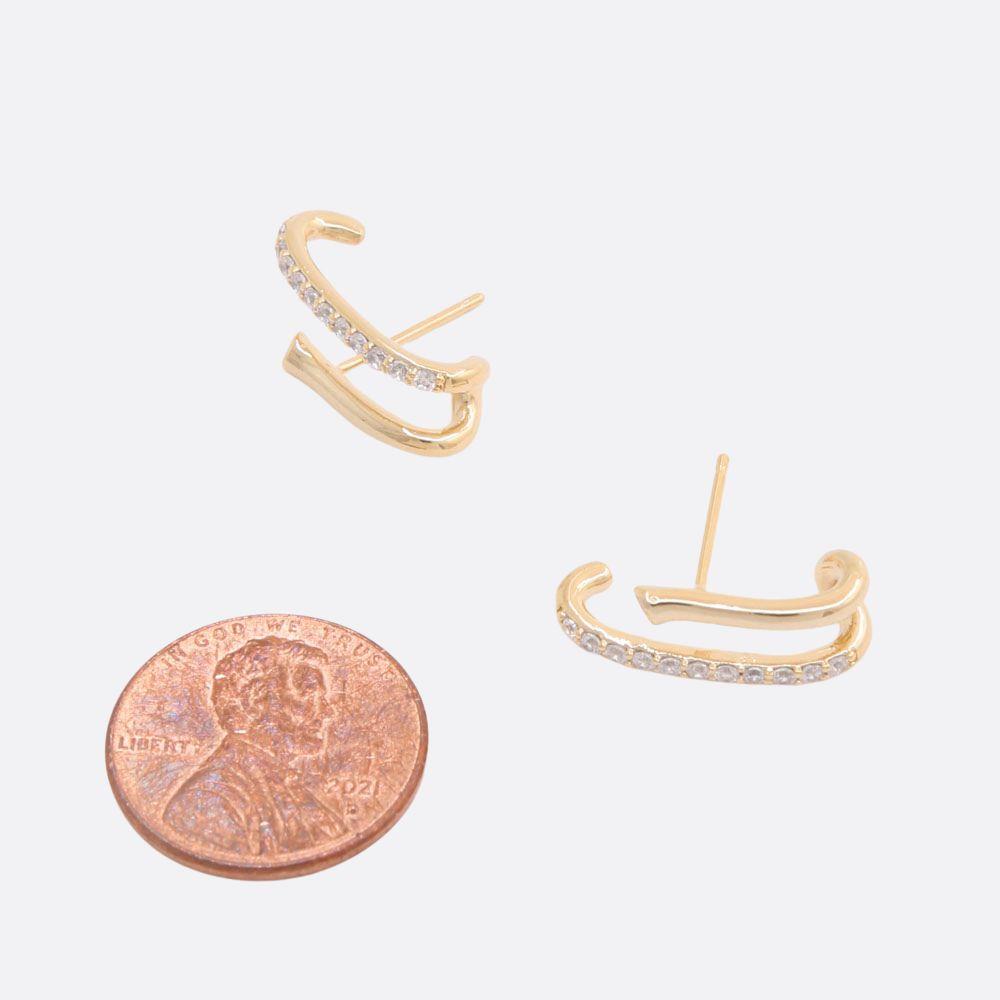 Brighten your day with the Joia Sodajo Curve Bar CZ Gold Dipped Earrings! These playful earrings feature sparkling cubic zirconia set along a sleek gold-dipped curve bar, adding a dash of fun and elegance to any outfit. Perfect for those who love a little sparkle with a modern twist.