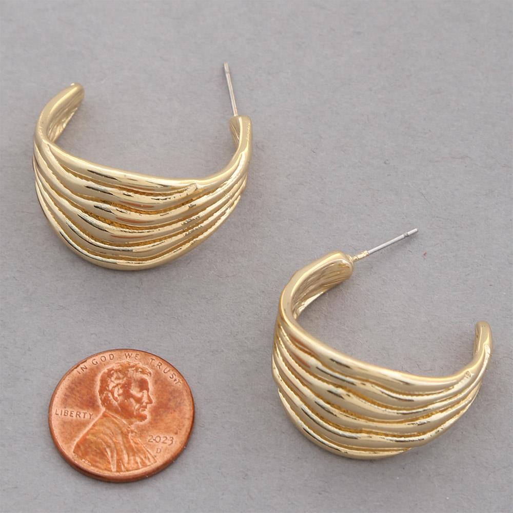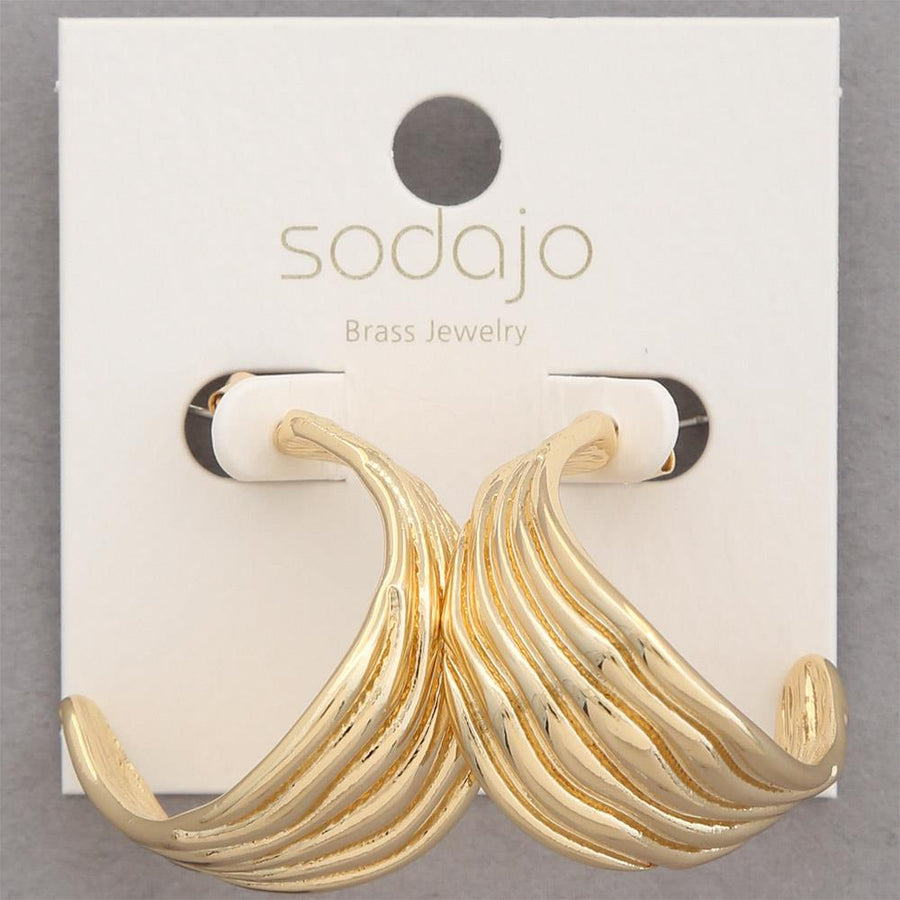 Elevate your style with the Joia Sodajo Metal Gold Dipped Wave Earrings. Featuring a sophisticated wavy design on half hoops, these earrings offer a bold, chunky look that effortlessly complements both casual and formal outfits. Crafted to add a touch of elegance and modern flair, they are perfect for those who appreciate unique, statement accessories.