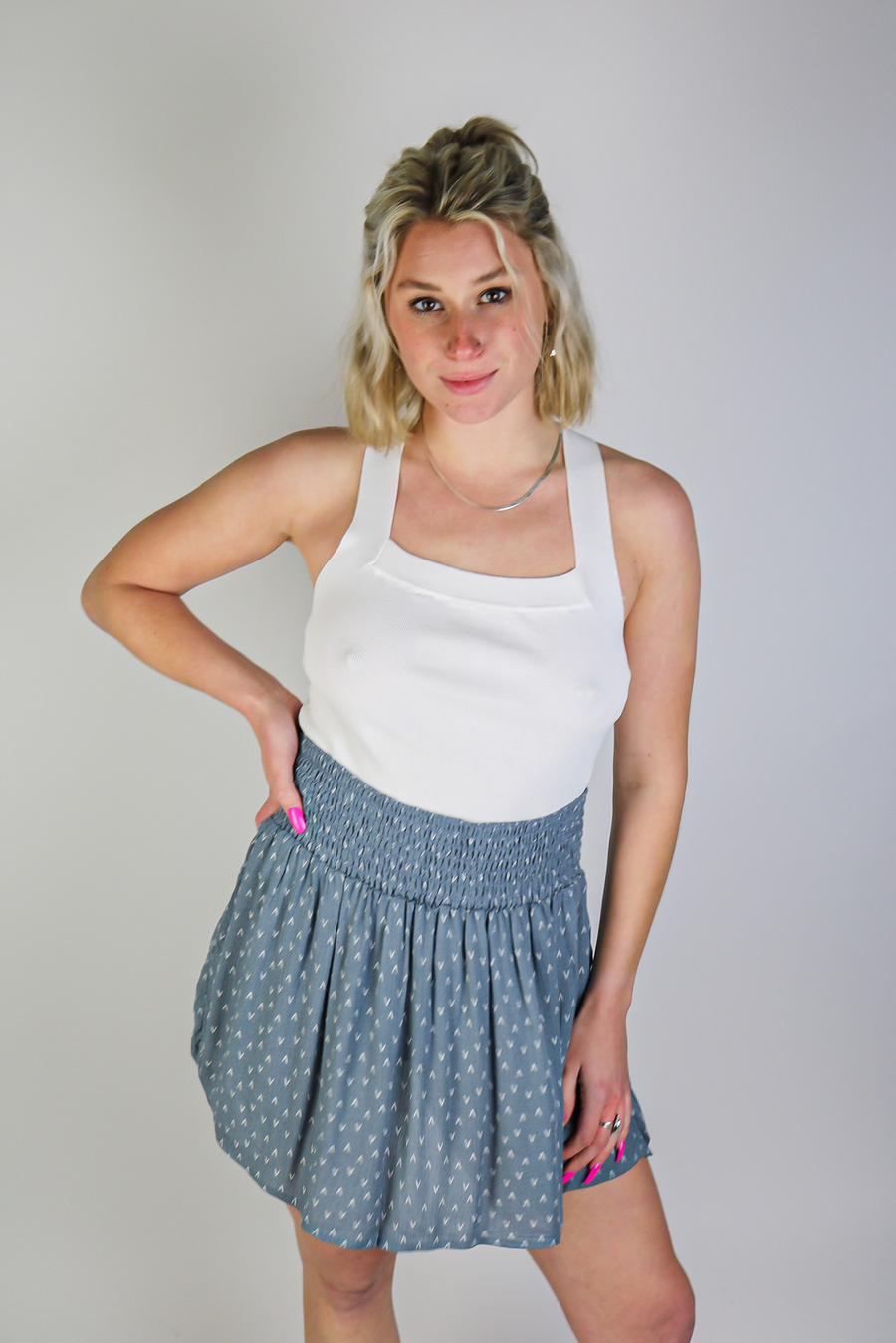 From a product and industry expert comes our Tiny Geo Mini Skirt, designed to enhance your style with its unique pattern. Made with quality materials, this skirt provides comfort and sleekness, perfect for any occasion. Make a statement with this must-have addition to your wardrobe.