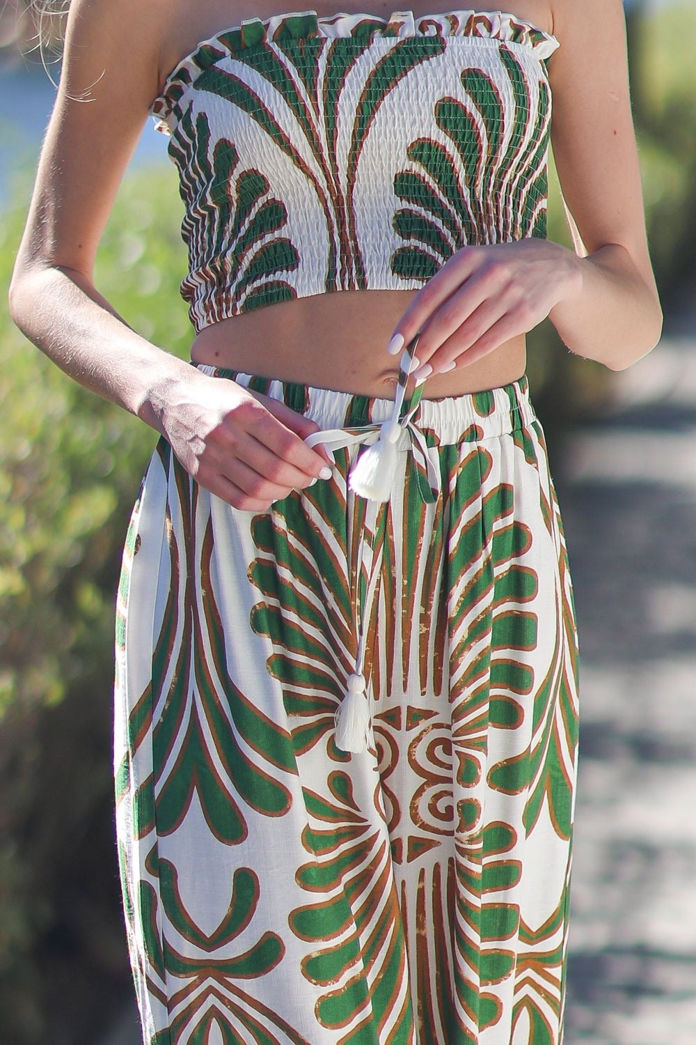 Effortlessly elevate your style with our Aakaa Tube Top And Elastic Waist Pant Set! This outfit set features a bold tropical print on the comfortable, elastic waist pants, paired with a chic tube top. Perfect for a day out or a stylish evening, this set will have you looking and feeling your best!