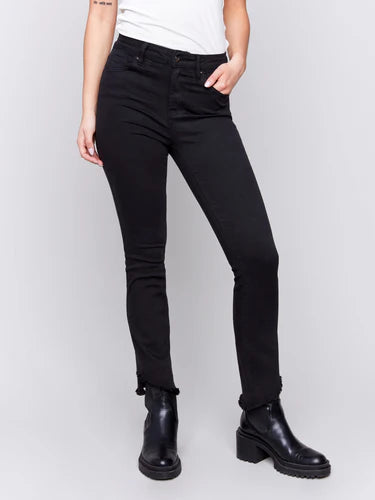Unleash your edgy side with Charlie B's Assymetrical Hem Bootcut Pant. Perfect for the fashion-forward and fearless, this pant features a unique hemline and flattering bootcut fit. Take your style to the next level with Charlie B!