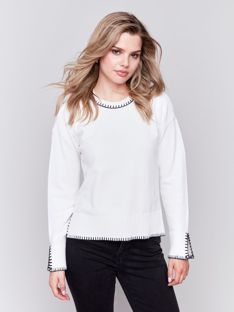 The Charlie B Blanket Stitch Sweater offers a cozy, handcrafted look with its distinctive blanket stitch detailing. Made from a soft knit fabric, this sweater combines warmth and style effortlessly. Its unique design makes it a standout piece, ideal for layering on chilly days.