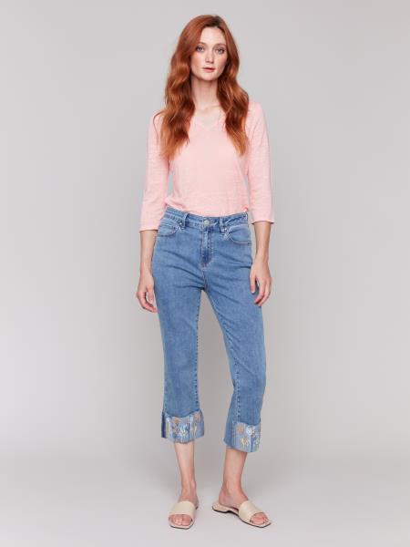 Introducing the latest addition to our Charlie B collection - the Charlie B Jeans with Embroidered Cuff! These jeans feature delicate embroidered details on the cuffs, adding a touch of elegance to your everyday look. Comfy, stylish, and easy to wear, these jeans are a must-have in any wardrobe. Upgrade your denim game today!