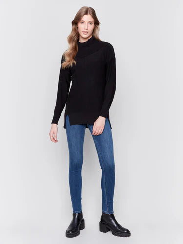 Stay cozy and chic in our Charlie B Long Cowl Neck Sweater! With a cowl neckline and ribbed cuffs, collar, and hem, this sweater keeps you warm and stylish. The side slits and high-low hem add a unique touch to this classic piece. Perfect for staying warm on chilly days.