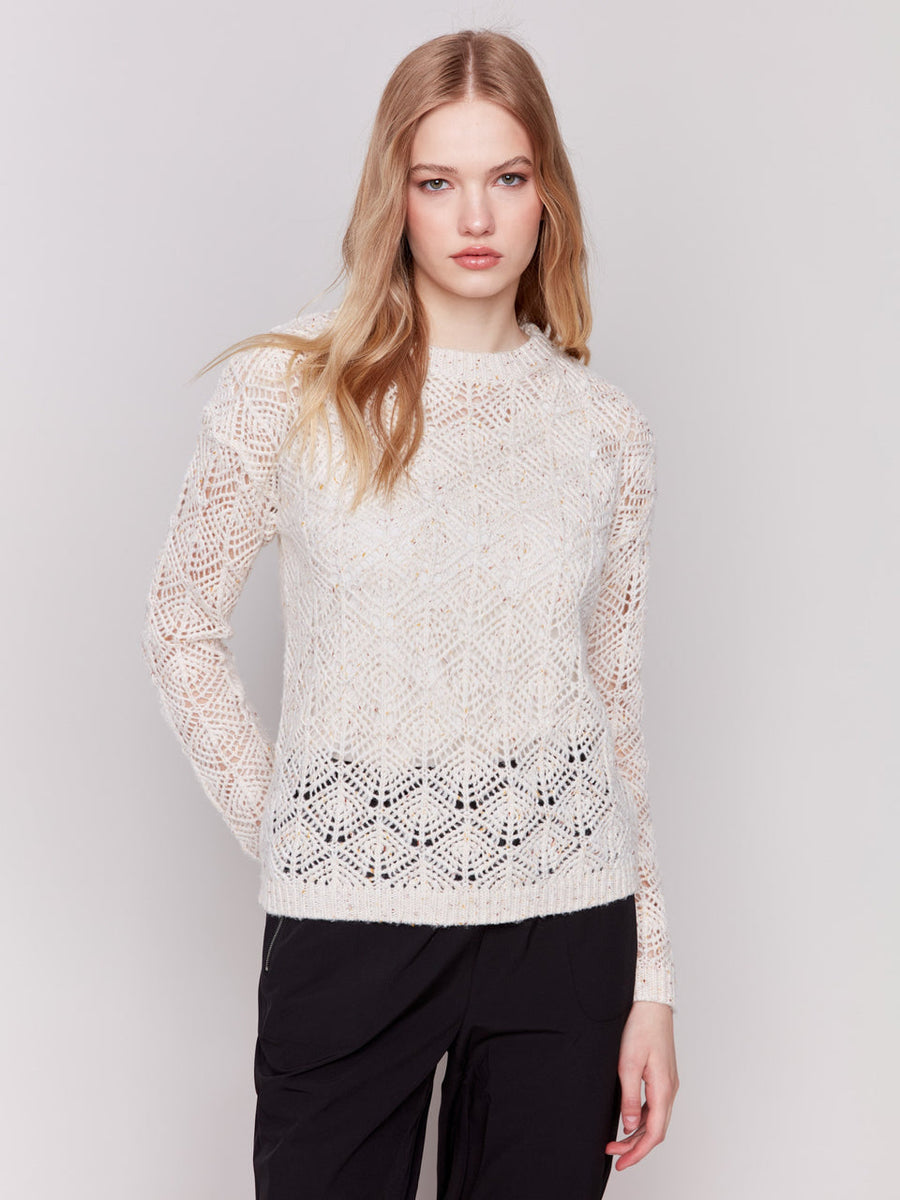 Experience cozy chic with the Charlie B Long Sleeve Crew Neck Crochet Sweater. This stylish top features intricate crochet detailing and a soft, comfortable fabric. Perfect for any occasion, this sweater will keep you looking and feeling your best all day long.