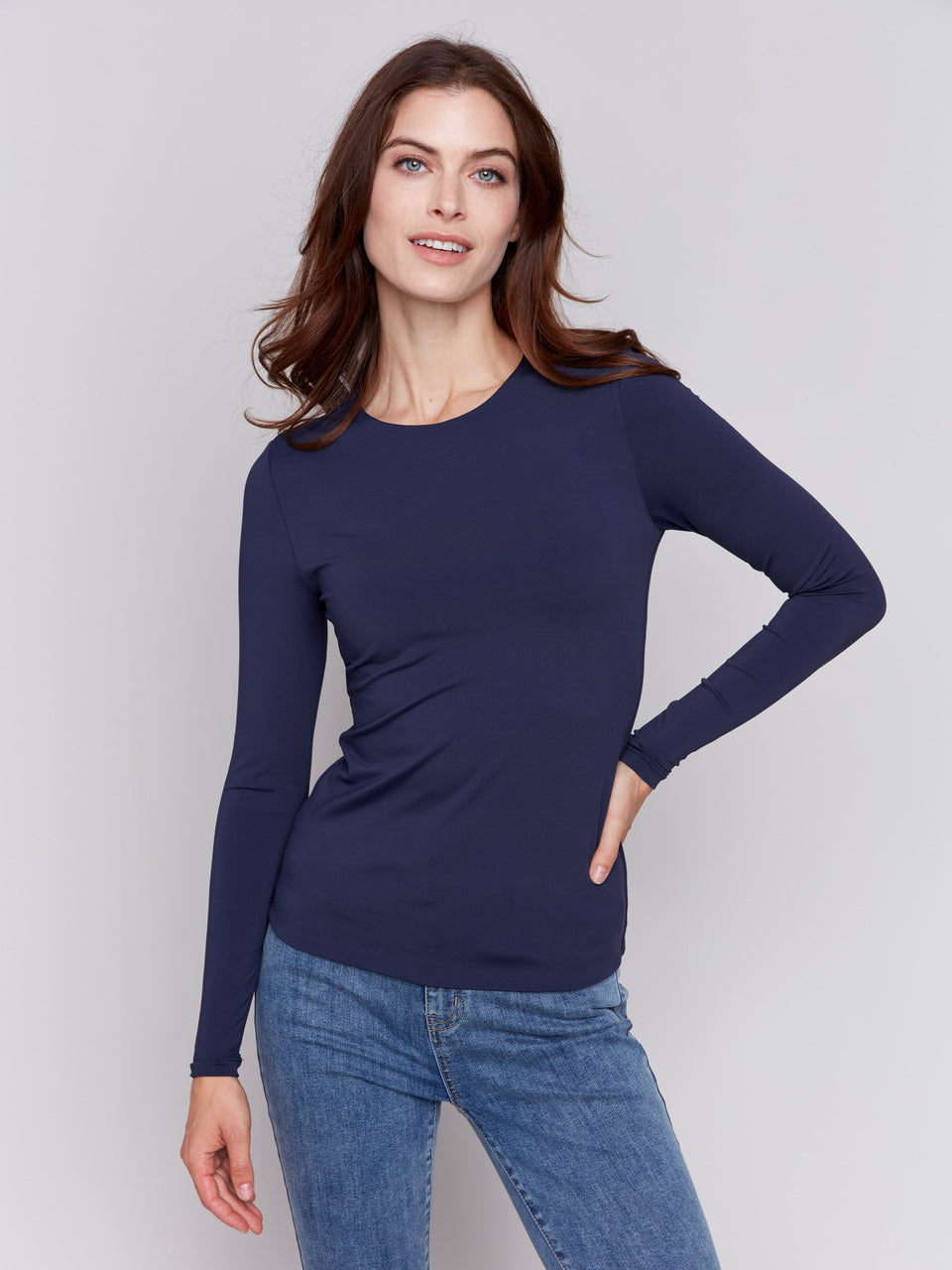 Stay cozy and chic with the Charlie B Long Sleeve Crew Neck Double Cloth Top. This must-have top features a soft double cloth material for ultimate comfort and a classic crew neck design. Perfect for any casual or dressed up look! (You'll never want to take it off!)