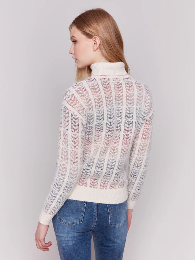 Get cozy with our Charlie B Long Sleeve Jacquard Knit Turtle Neck Sweater. Its ombre jacquard design adds a touch of style to any outfit, while its woven pattern provides warmth. Stay chic and warm with this versatile and essential piece.
