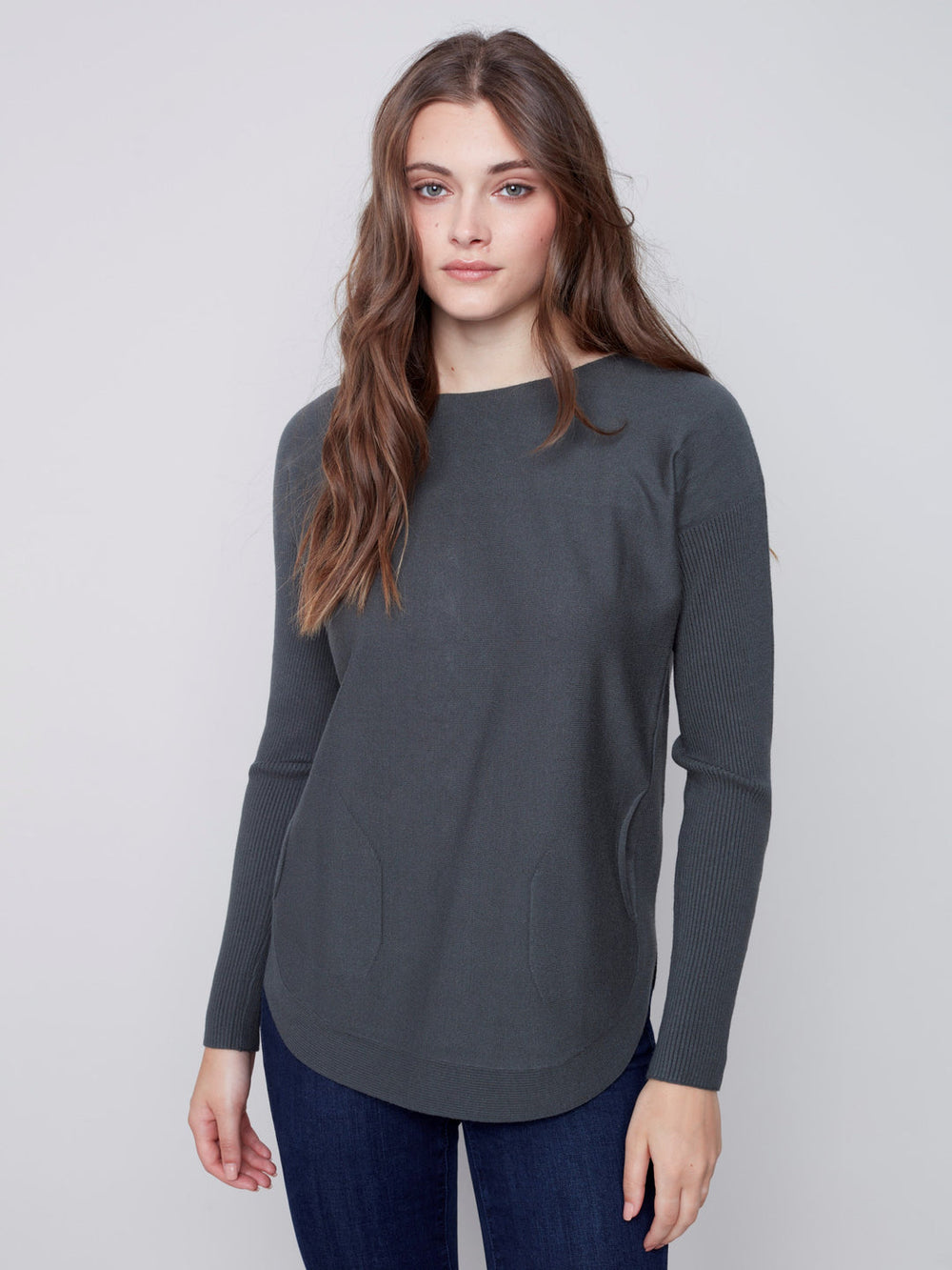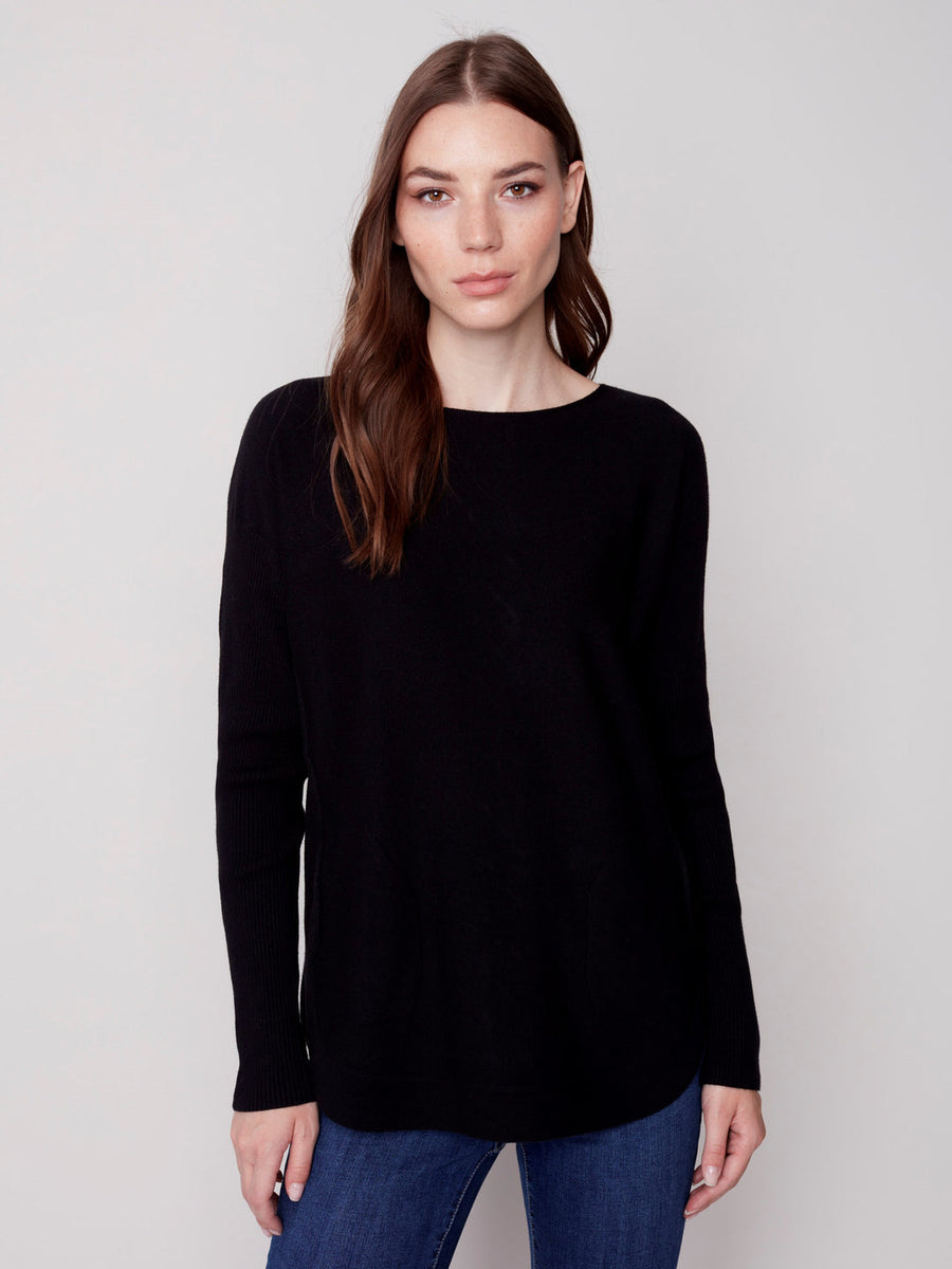 Le pull à manches longues Charlie B avec œillets au dos ajoute du style à votre garde-robe. Ce pull est fabriqué dans un matériau luxueusement doux, conçu avec des œillets complexes dans le dos et une coupe flatteuse. Parfait pour toute occasion.