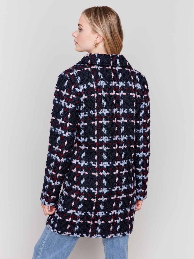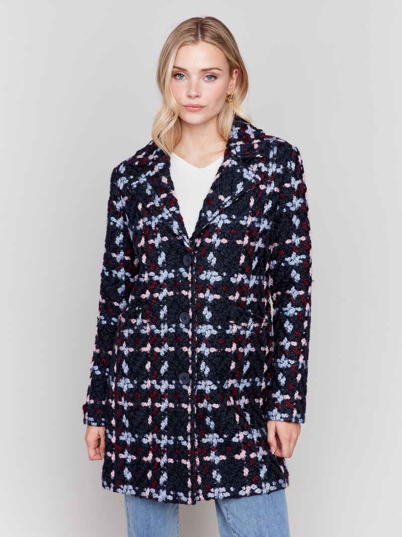 The Charlie B Straight Cut Plaid Boucle Knit Coat combines classic plaid with a modern boucle knit texture. The straight cut design offers a sleek, polished look, while the boucle fabric adds a cozy, textured element. This coat is ideal for adding a touch of elegance and warmth to your winter wardrobe.