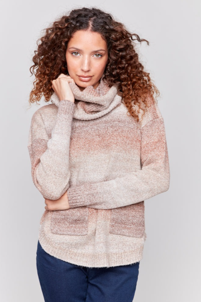 Get cozy with the Charlie B Sweater! This unique sweater features a detachable scarf made with novelty yarn, perfect for adding a playful touch to your winter wardrobe. Stay warm and stylish without taking yourself too seriously. (Sweater with removable scarf included - yarn may vary)