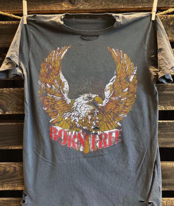 Express your wild and free spirit with our Country Deep Born Free Distressed Tee. The vintage design and distressed details give off a cool and laid-back vibe. The bold Born Free and Eagle logo adds an edgy touch. Embrace your rebellious side in style!