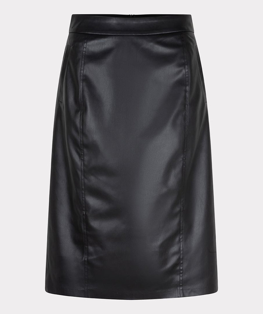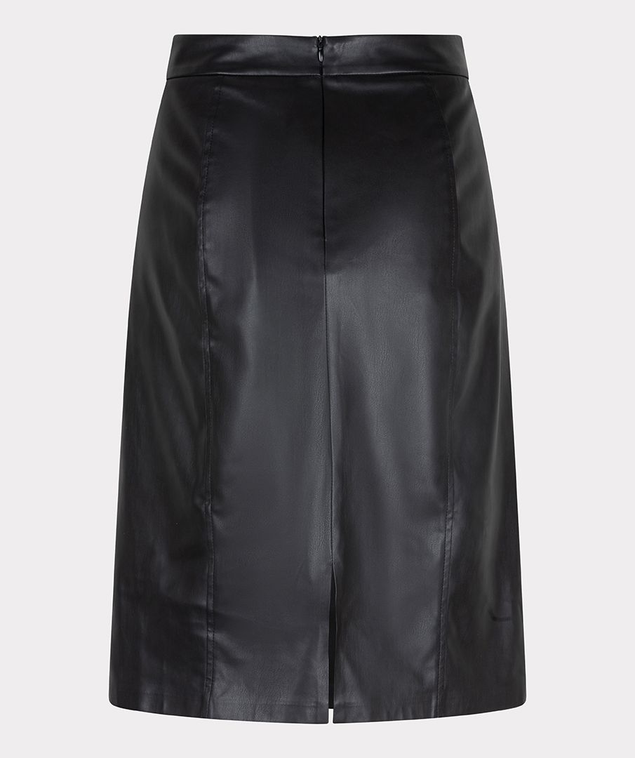 Be edgy and chic with the Esqualo Skirt Pencil Vegan Leather. This timeless pencil skirt features piped pockets at the front, a zipper fastening, and a short slit at the back. Perfect for a sophisticated and stylish look.