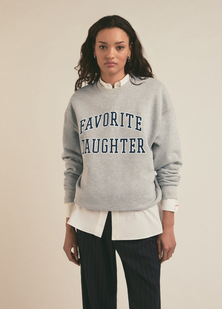 Introducing the Favorite Daughter Collegiate Sweatshirt, the perfect addition to any wardrobe. Made with high-quality materials, this sweatshirt is both comfortable and stylish. Show off your pride with "Favorite Daughter" emblazoned across the front in bold letters. Perfect for everyday wear or as a gift for the college student in your life.